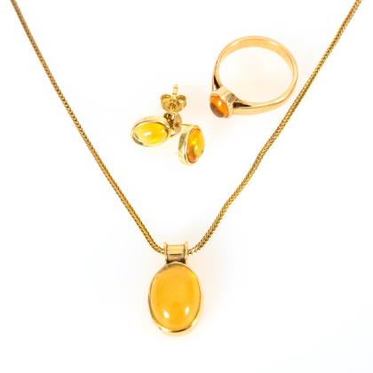 Jewelry set with fire opals.