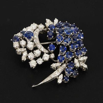 High-quality brooch with sapphires, brilliant-cut diamonds and diamonds.