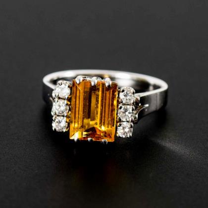 Ring with yellow beryl? and diamonds.