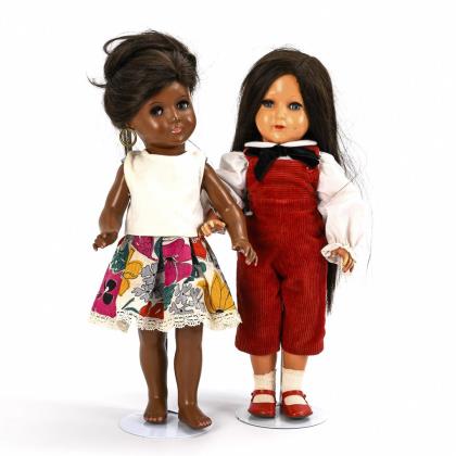 nachlackiert, 2 Püppchen, Inventar zusammengestellt
