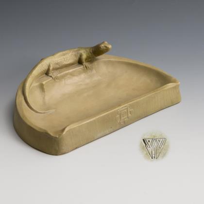 Art Nouveau bowl with lizard. Viennese art ceramic workshop Busch & Ludescher.