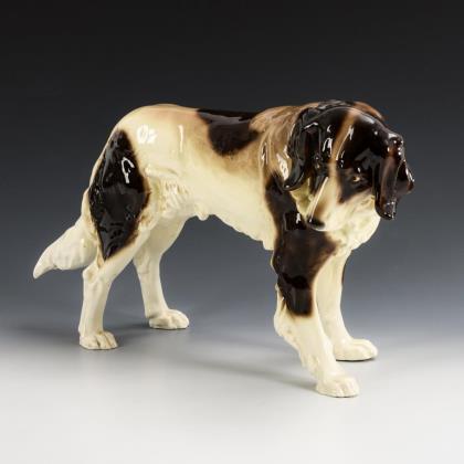 Large dog sculpture "Newfoundland". Viennese manufactory Friedrich Goldscheider.