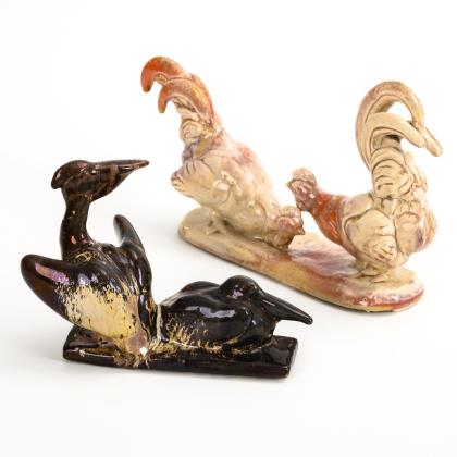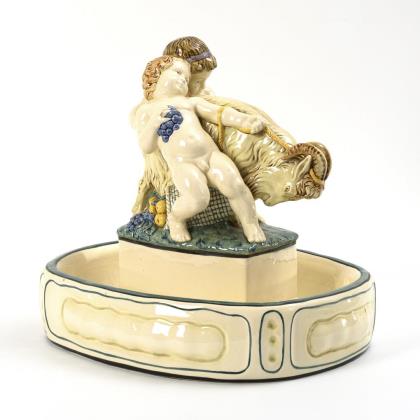 Large centerpiece with 2 putti and billy goat. Karlsruhe majolica.
