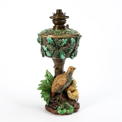 Petroleum lamp with birds. Hugo Lonitz & Co, Neuhaldensleben.
