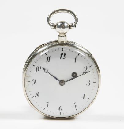 Silver verge pocket watch with "Jacquemart" figurine automaton and "Breguet à Paris" quarter repeater.