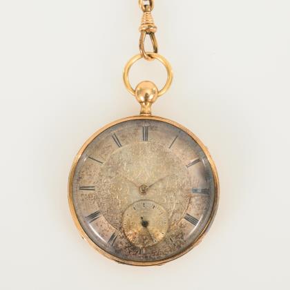 Kette 585 geprüft Uhr gepunzt 1809-65, + 2 Schlüssel, ergänzter Uhrenmantel aus Metall
