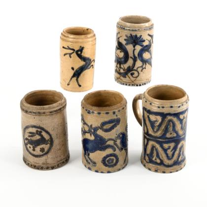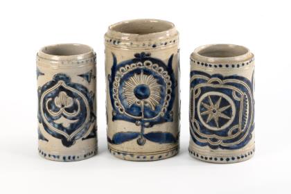 3 Westerwald roller jugs with fine matrix and incised decoration.