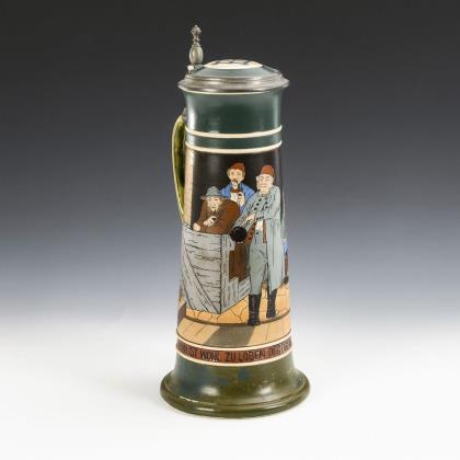 Very large Mettlach jug with maid and 2 soldiers. Villeroy & Boch.