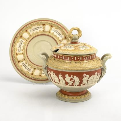 Large Phanolith wall plate "Trojan lady with slaves tying shoes". Villeroy & Boch.
