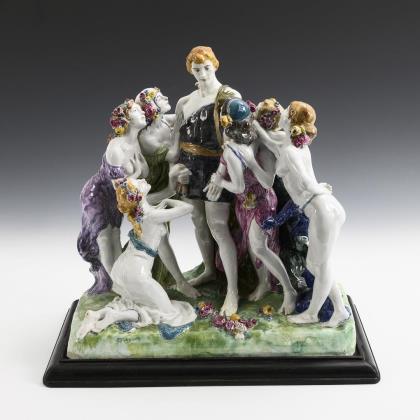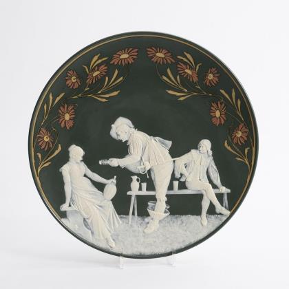 Large Phanolith wall plate "Pan's musical contest with Apollo". Villeroy & Boch.