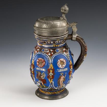 Large Rhenish Wilhelminian-style flat-bottomed jug.