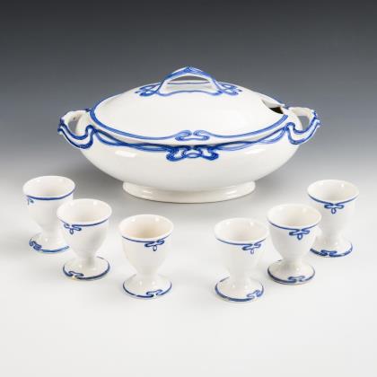 Art Nouveau tureen and 6 egg cups "Blue Olga". Villeroy & Boch.