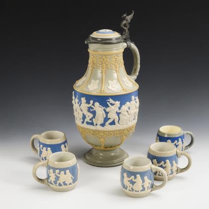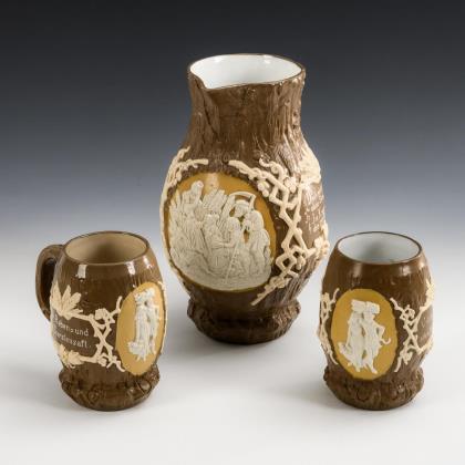 Large and small Gründerzeit jug with bar scenes. Villeroy & Boch.