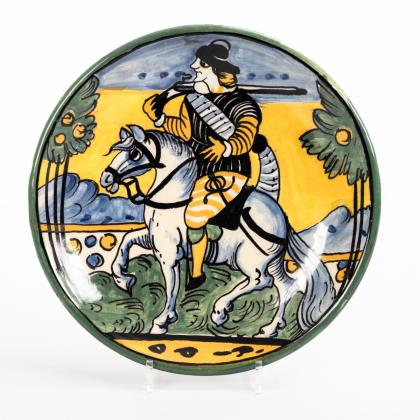 Pair of chromolite wall plates with lansquenets. Villeroy & Boch.