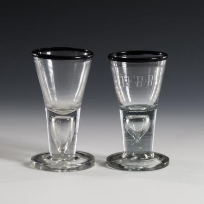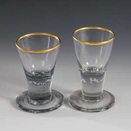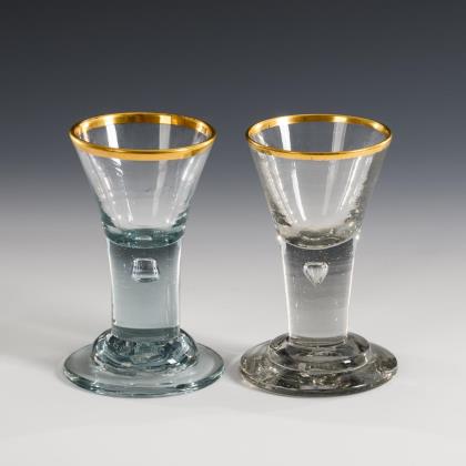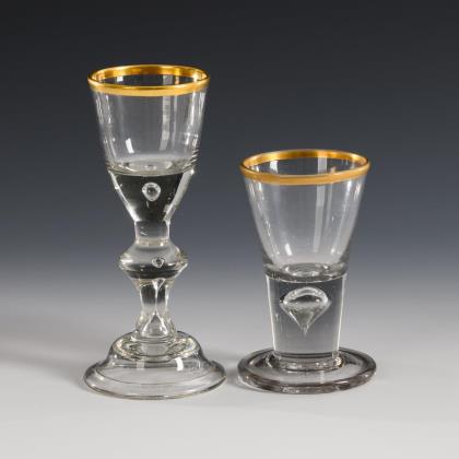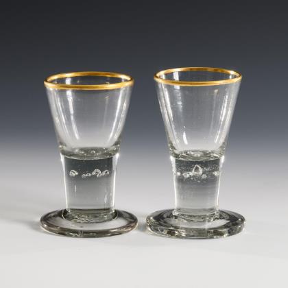 Shot glass and goblet with gold rim. Lauenstein.