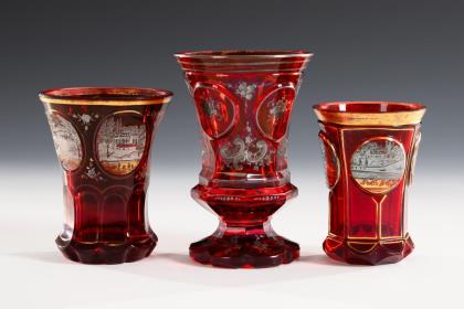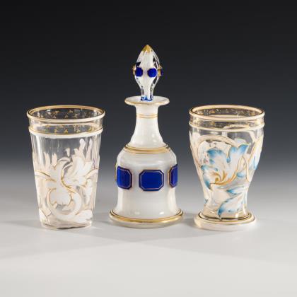 Flakon und Becher mit Emailmalerei