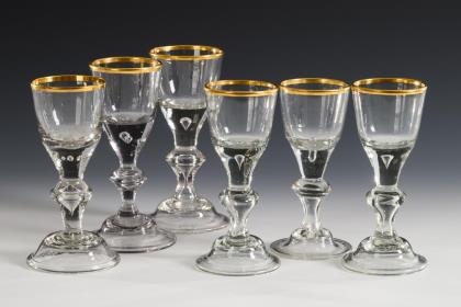 6 goblets with gold rim. Lauenstein.