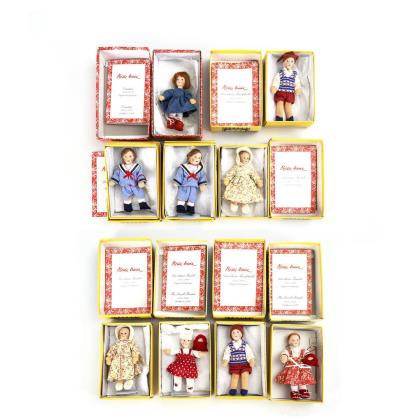 9 doll's house dolls in original boxes. Käthe Kruse.