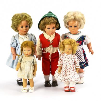 3 large and 2 small plastic dolls. Käthe Kruse.