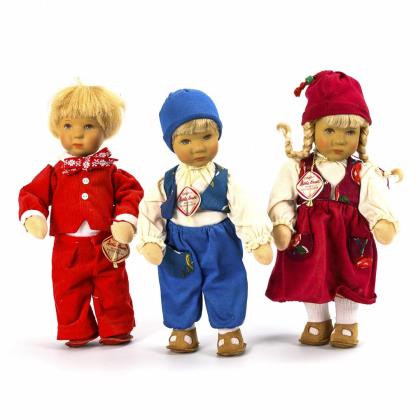 3 dolls "Willi", "Jockerle" and "Peter". Käthe-Kruse Club Edition.