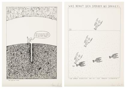 SCHMIT, Tomas (1943 Wipperfürth - 2006 Berlin). 2 works and "Der Außenwelt halber" and "Was denkt der Sperber bei Sonne?".