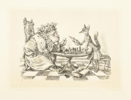 WEBER, Andreas Paul (1893 Arnstadt - 1980 Schretstaken). "Lion and fox at chess I".