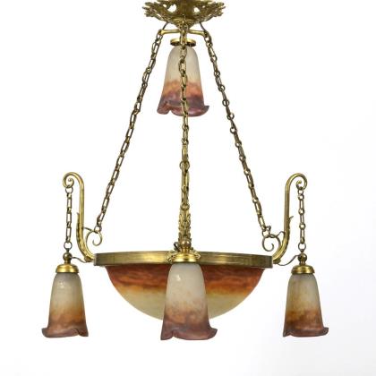 5-light Art Déco ceiling lamp.