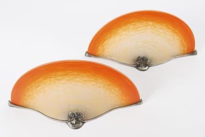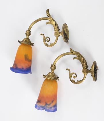 Pair of wall lamps with glass tulips. Muller Frères, Luneville.
