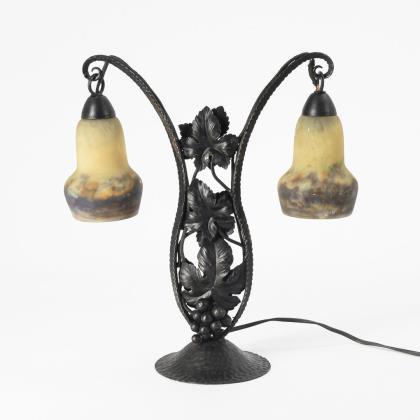 Table lamp with 2 glass bells. Muller Frères, Luneville.