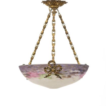 French bowl lamp with 4 bells. Muller Frères, Luneville.