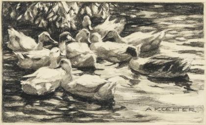 KOESTER, Alexander (1864 Berneustadt - 1932 Munich). Ducks on the water.