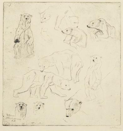 KLEMM, Walther (1883 Karlsbad - 1957 Weimar). Study with bears.
