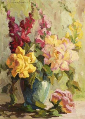 Russian painter: Still life with flowers.