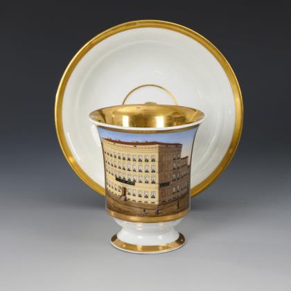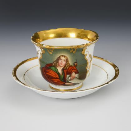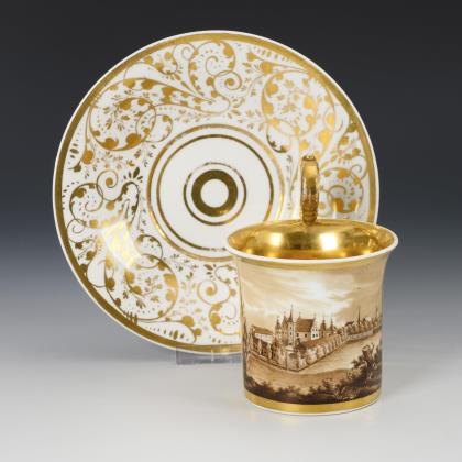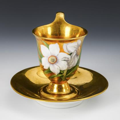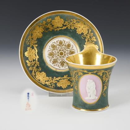 Biedermeier cup with bisque relief and gold painting in relief. KPM Berlin.