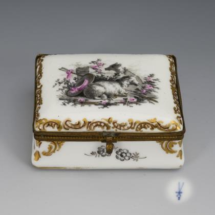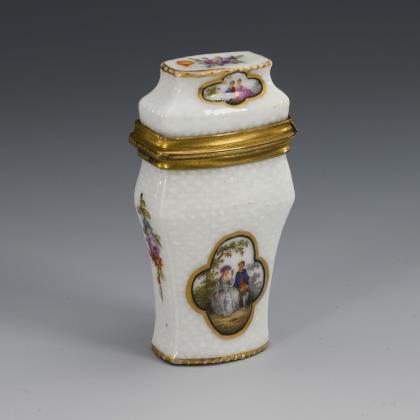 Baroque tea caddy with cacique painting. Meissen.