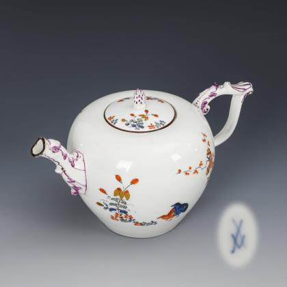 Baroque teapot with quail decoration. Meissen.