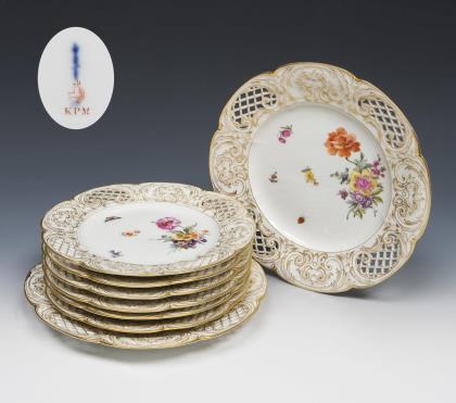 6 + 2 pierced plates. KPM Berlin.