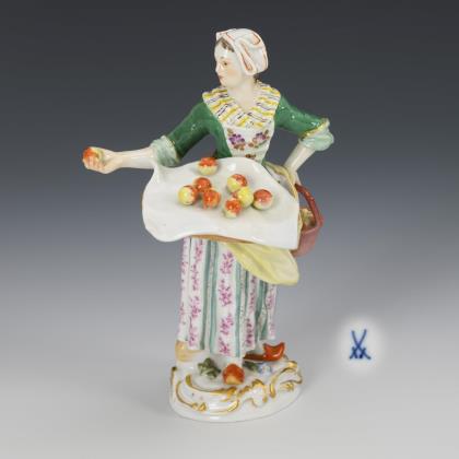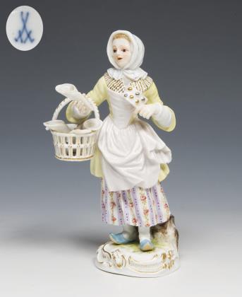 Modell-Jahr: 1750-1760, aus einer Serie von 80 Figuren, farbig bemalt, gold staffiert. Ritzmarke, Pressmarke, Malermarke, Schwertermarke