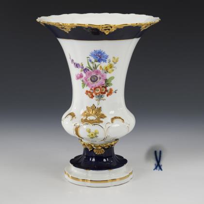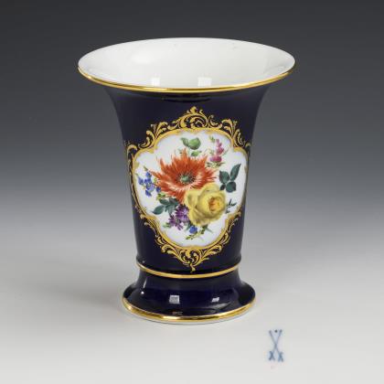 B-shaped vase with floral painting and cobalt background. Meissen.
