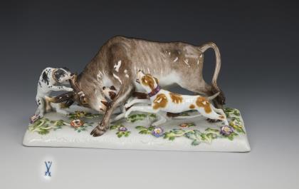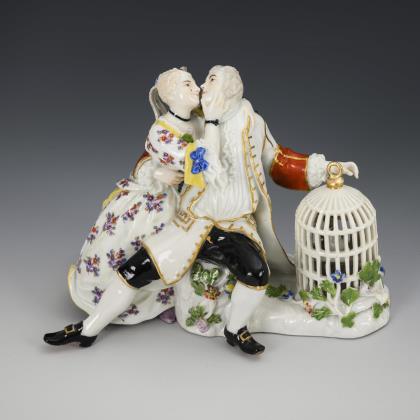 Modell von Johann Joachim Kaendler und Mitarbeiter 1759, farbig bemalt, gold staffiert. Ritzmarke, Pressmarke, Malermarke, Schwertermarke