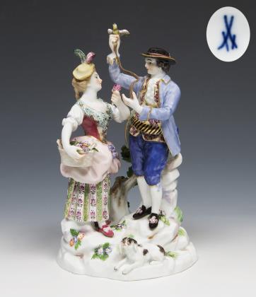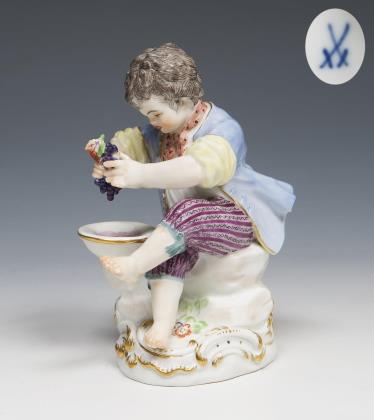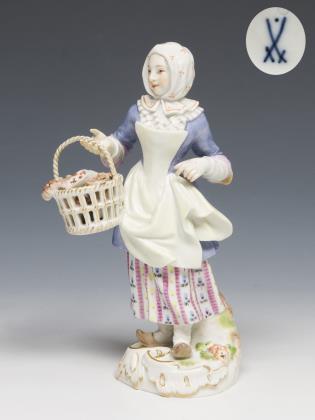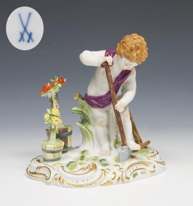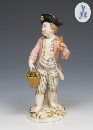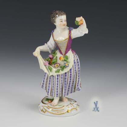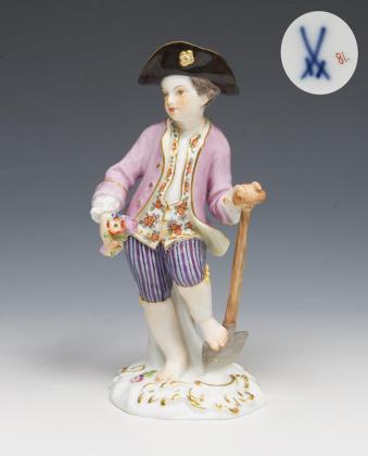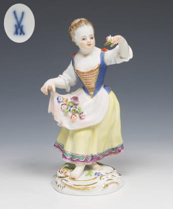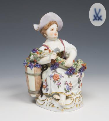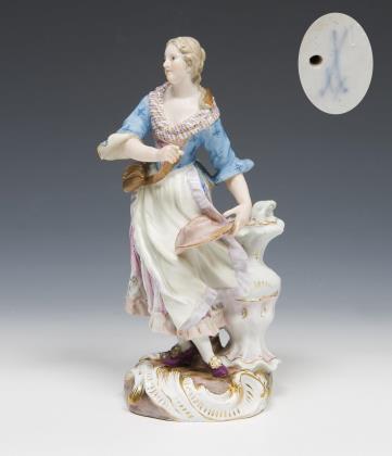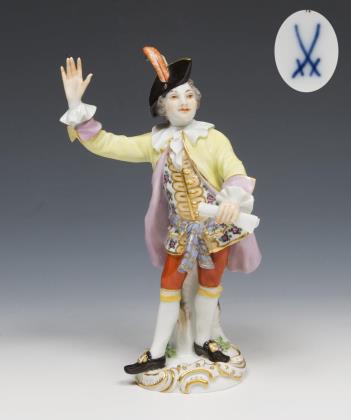 Modell-Jahr: 1761 (Erstausformung 1772), aus einer Serie von 20 Figuren, farbig bemalt, gold staffiert. Ritzmarke, Pressmarke, Malermarke, Schwertermarke