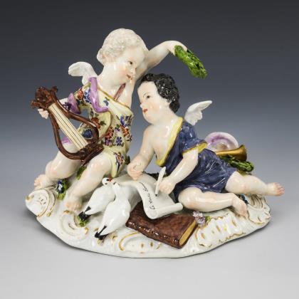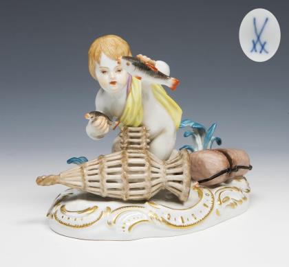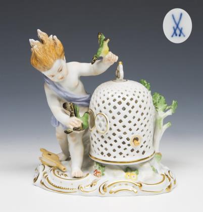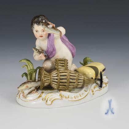 Modell-Jahr: 1770, aus einer Serie "Die 4 Elemente", farbig bemalt, gold staffiert. Ritzmarke, Pressmarke, Malermarke, Schwertermarke