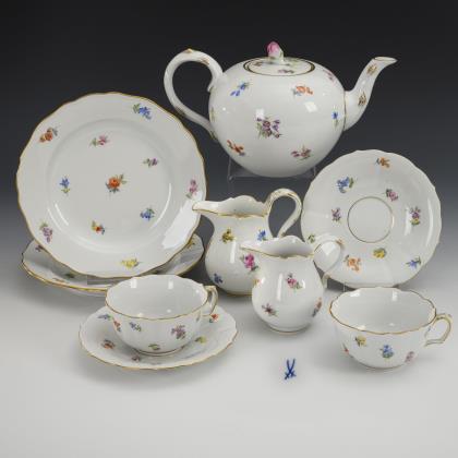 9 pieces of a tea service with scattered flower painting. Meissen.