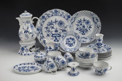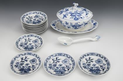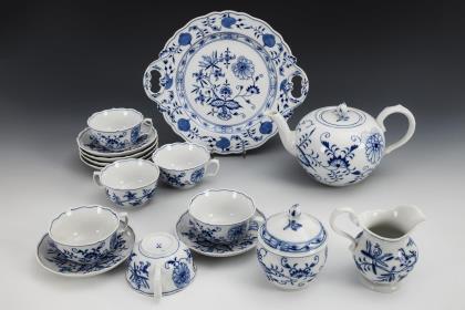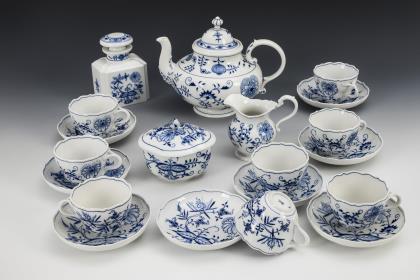 21 pieces of an onion pattern coffee/tea service. Meissen.