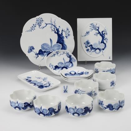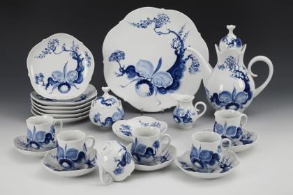 19 pieces porcelain "Blue orchid on branch". Meissen.