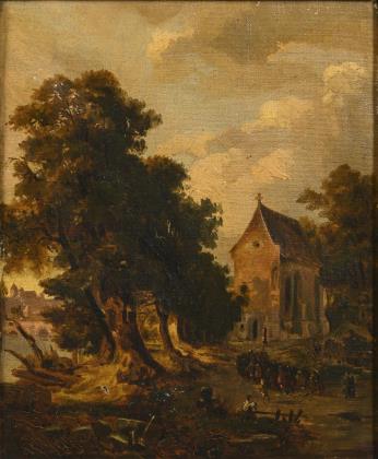 KAUFMANN, Karl (1843 Neuplachowitz - 1905 Vienna). Old town with church.