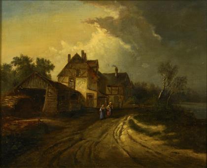 Indistinctly signed: Village landscape.