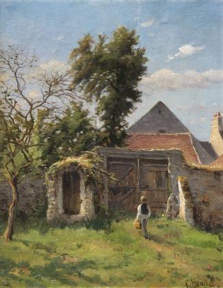 HENRIET, Frédéric (1826 Château-Thierry - 1918 Château-Thierry). Boy in a summery village landscape.