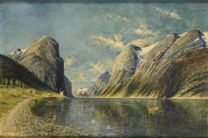 BLASCHNIK, Arthur (1823 Strehlen/Silesia - 1918 Berlin). Mountainous landscape with lake.