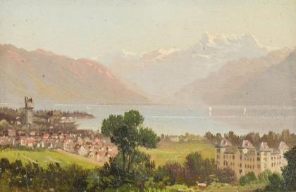 SCHOVELIN, Axel (1827 Copenhagen - 1893 Frederiksberg). View of Helsingør and Kronborg Castle.